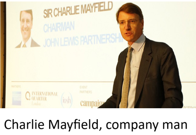 After retiring from the army, Charlie went on to pursue careers in government and business, most notably as managing director of the John Lewis shopping chain. Theoretically, John Lewis operates an employee-owned model where its 80,000-plus staff are referred to as 'partners’. In a profile of Charlie in 2017, the Daily Mail announced that “despite revealing increased profits of £370million” Charlie cut staff bonuses to 6 per cent – the lowest since the 1950s. So, despite the nice words, not much partnership from Sir Charles and John Lewis.